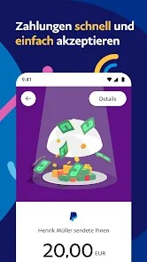 Ob Sie nun Freunden Geld für einen Wochenendausflug oder das gestrige Abendessen zurückzahlen – mit der PayPal-App können Sie Freunden und Familie ganz einfach Geld Mit der neuen PayPal App können Sie online und unterwegs bezahlen, Geld senden und empfangen, für einen guten Zweck sammeln oder spenden1 – direkt von Ihrem Handy aus.”