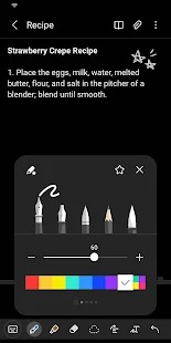 Sie können aus verschiedenen Stift- und Pinseltypen und -farben auswählen, um Ihre Notizen und Bilder zu personalisieren.